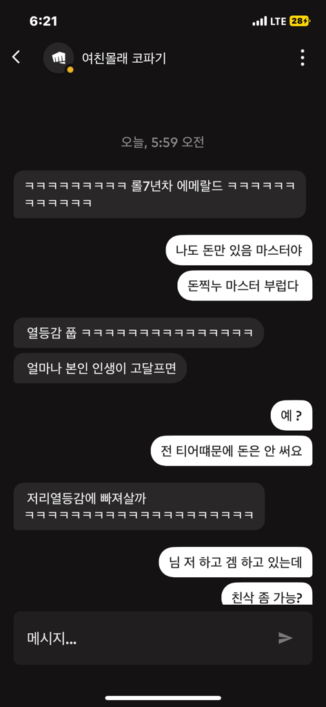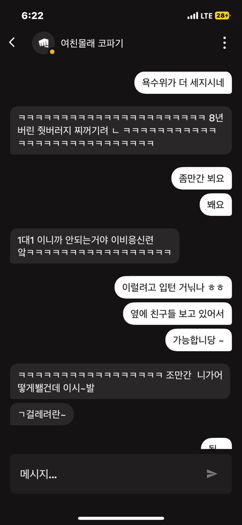 1:1 대화라 모욕죄도 성립이 어렵기 때문에 신고하시더라도 실익은 없을 것으로 예상됩니다.