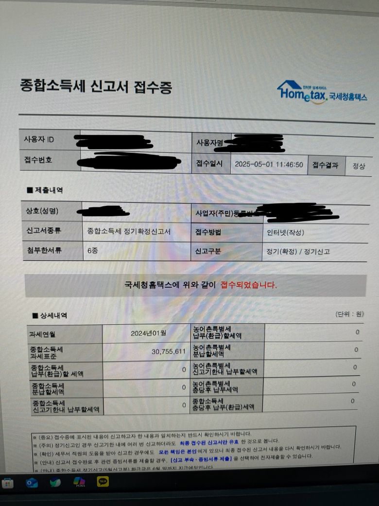 5월에 종합소득세로 연말정산을 제가 따로 해야한다고 해서 종합소득세 신고를 손택스에 했습니다