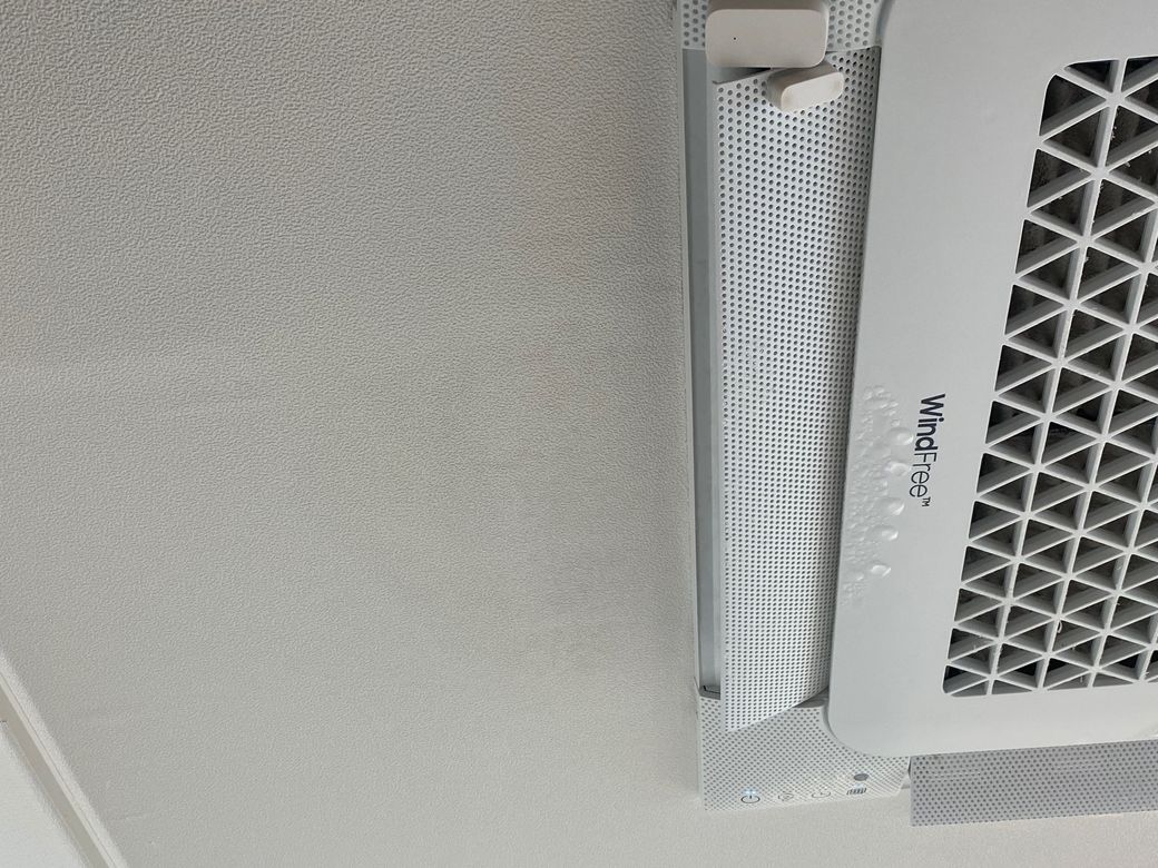 에어컨이 벽쪽에 너무 가깝게 시공되어 결로 현상이 고질적으로 발생하고 있습니다.