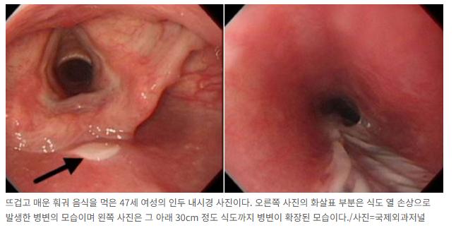 뜨거운 것은 먹거나 마신 다음 식도가 화상을 입는 경우가 있습니다.