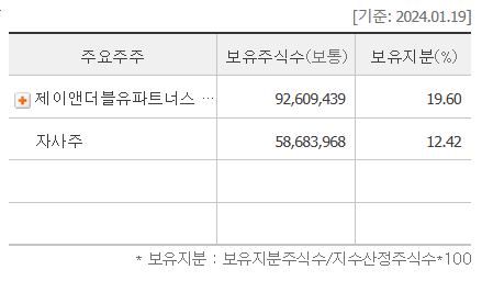 현재 SK 증권의 최대 주주는 J&W BIG LCC 라는 곳으로 지분 19.44%를 보유하고 있습니다.