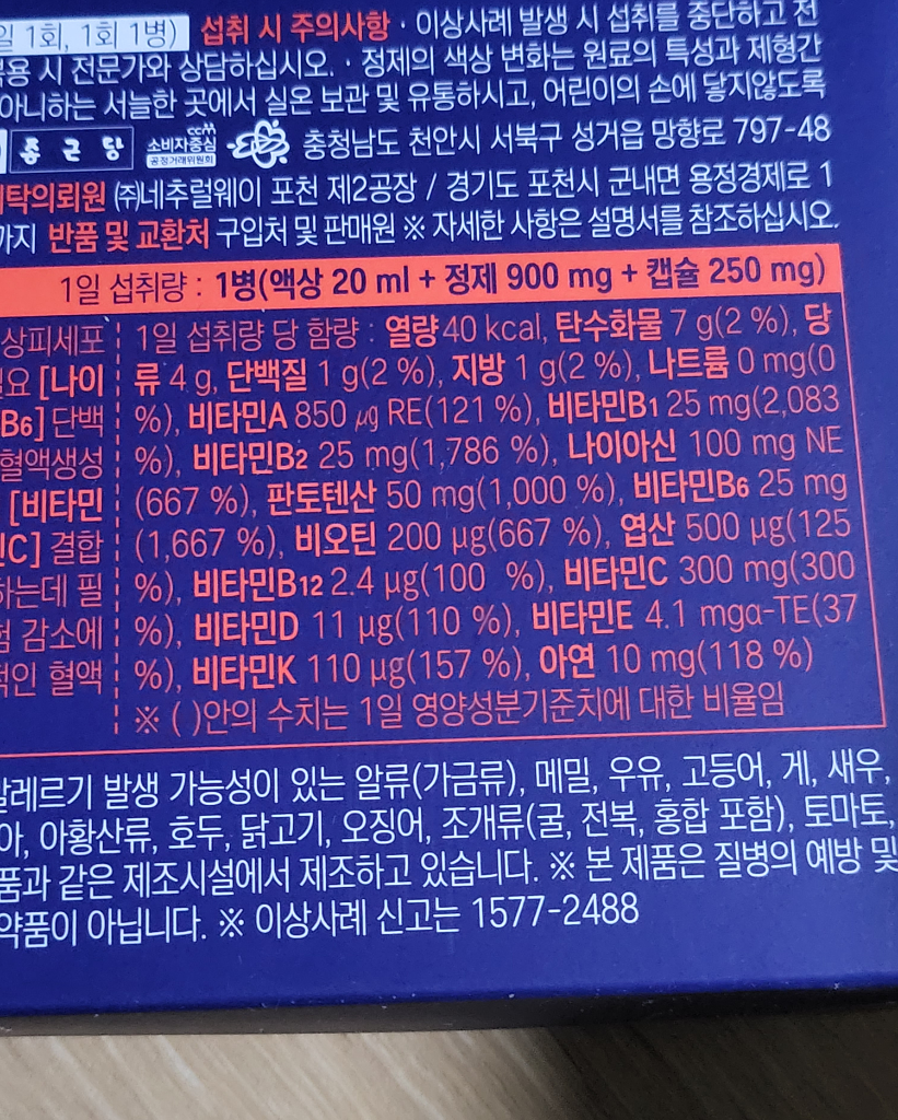 알약 제품보다 액상형태 제품의 경우 흡수가 빠르게 되어 피로감을개선하는 효과가 더 빠릅니다.