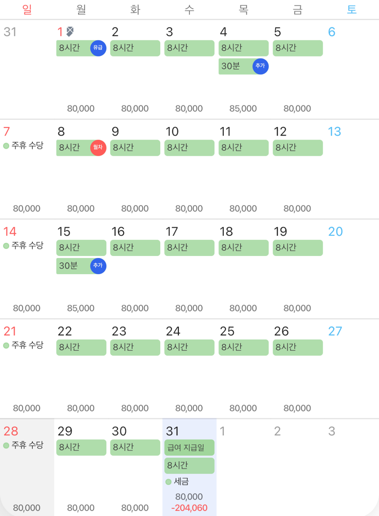 월급에 4대보험이 적용되어서 계산되는게 맞습니다. 달이 넘어갔으니 건강보험, 국민연금은 한달치 전부가 공제됩니다.