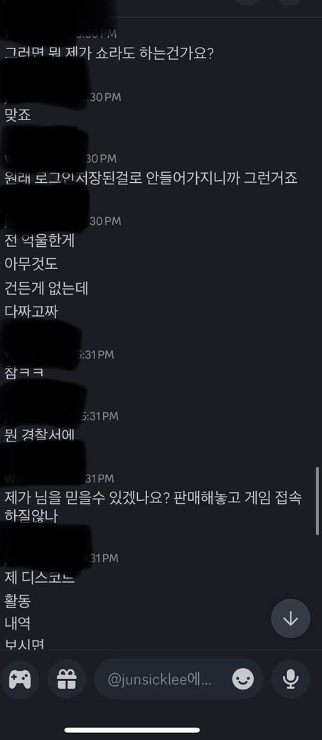 그래서 이럴거면 계정을 다시 환불해주고 사용하시던가 아니면 두번다시 들어오지 말라고 연락하였고