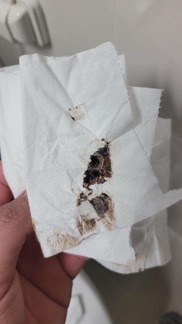 좀 마르긴 했는데 닦았는데 검정색에 가까운 갈색이거든요??