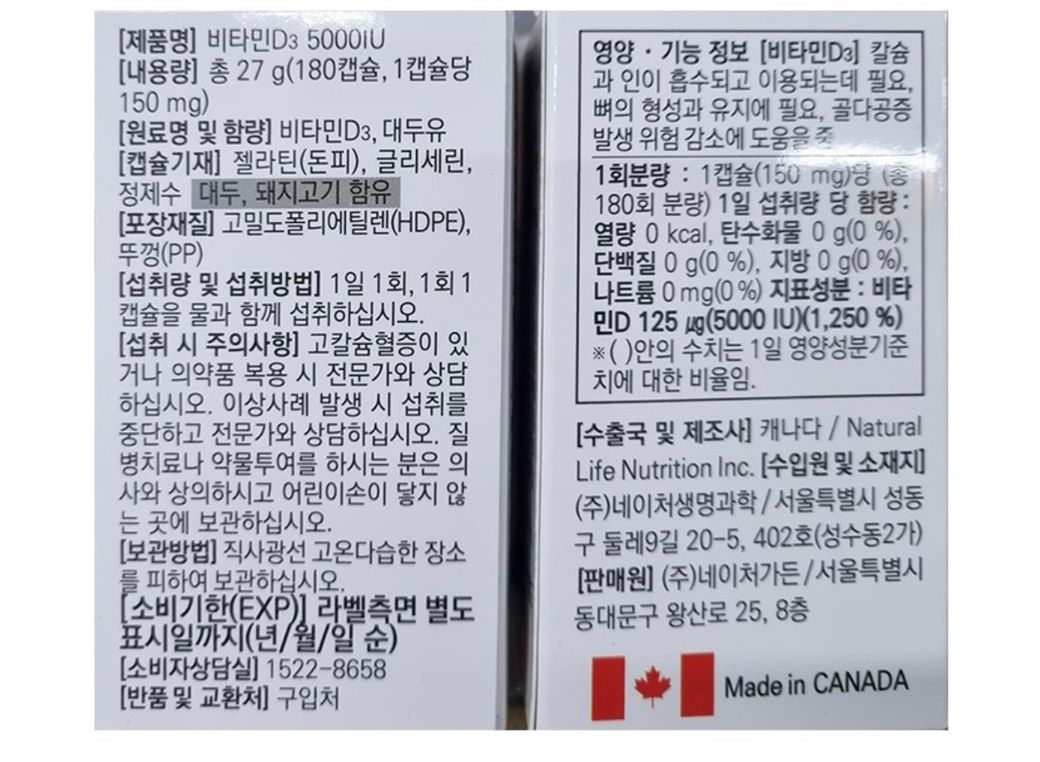 오른쪽의 영양,기능정보에는 비타민D의 함량이 구체적으로 표시되지 않을 것을 보았을 때