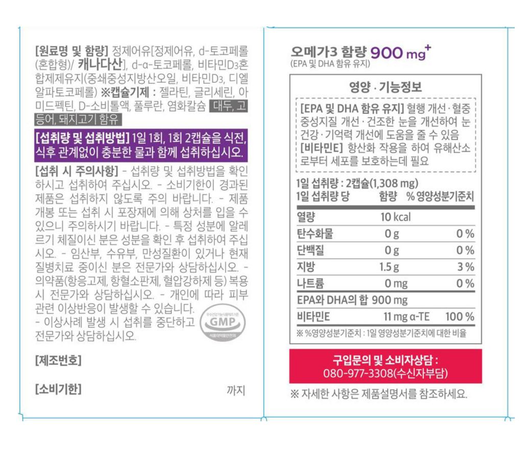 안녕하세요, 비타민D3 5000IU 1일 1캡슐, 오메가3 900mg 1일 2캡슐 총합 3캡슐 복용중입니다. 오메가3 원료에 비타민D가 포함되어 있어, 비타민D 과잉복용이 아닌지 문의드립니다. 두 제품의 원료 및 함량, 영양/기능 정보 첨부하오니, 확인 부탁드립니다. 감사합니다. :)
