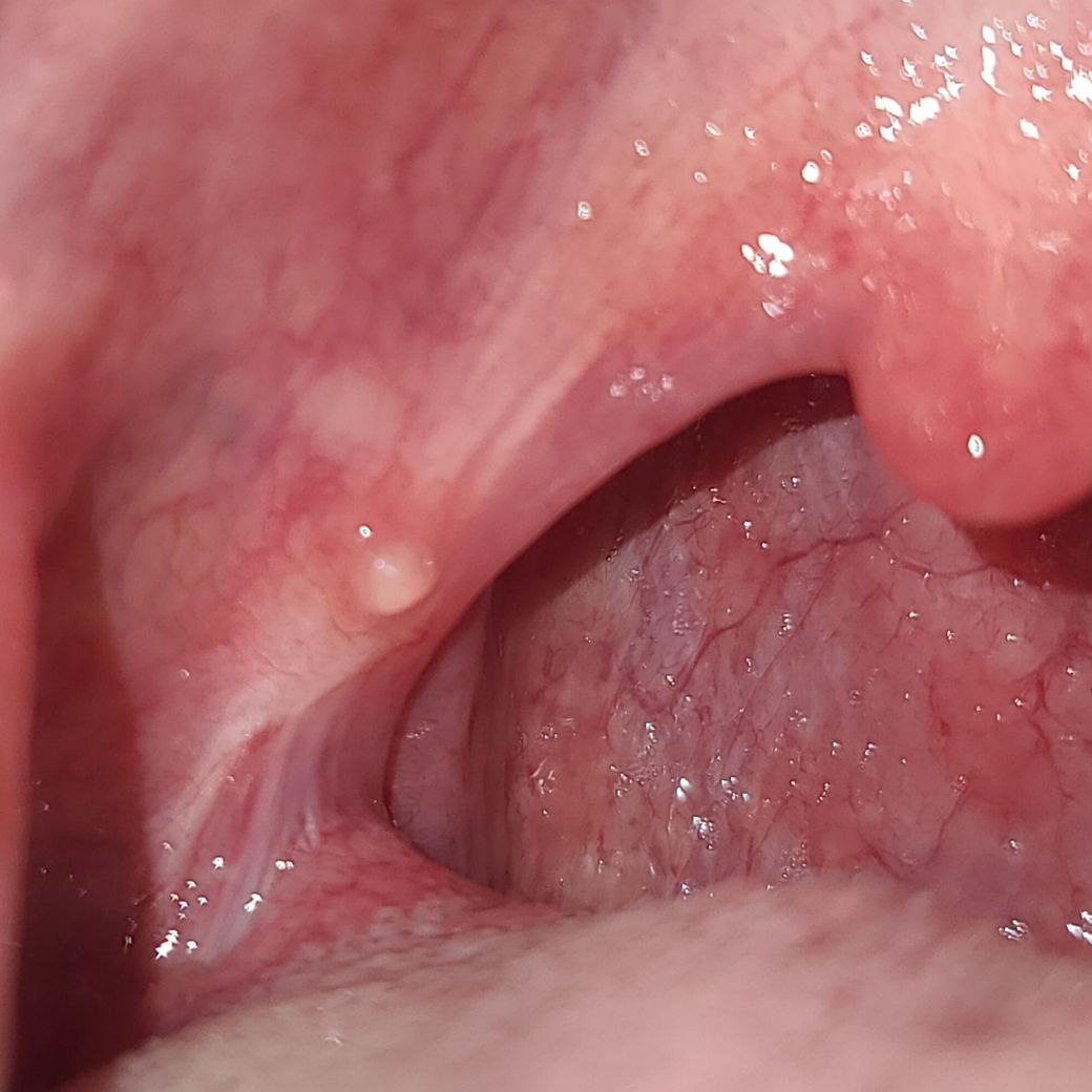 설명하신 소견은 점액낭종 가능성이 높습니다. 점액낭종은 침샘이나 점액샘의 배출구가 일시적으로 막히면서 점액이 고여 생기는 양성 병변으로, 편도 제거 수술을 한 자리에도 비교적 흔하게 나타날 수 있습니다. 최근 체하고 구토를 하면서 인두 점막이 자극되거나 압력이 반복되면 점막 손상과 함께 이런 낭종이 생길 수 있습니다. 대개 통증은 크지 않고, 투명하거나 하얗게 보이며 며칠에서 수 주 내 자연 소실되는 경우가 많습니다. 크기가 커지거나 통증, 출혈, 2주 이상 지속되면 이비인후과 진료를 권합니다.