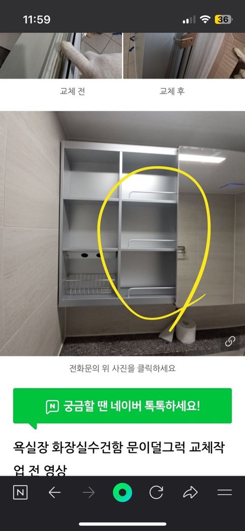 화장실 캐비닛 수건 막음장치? 문의입니다