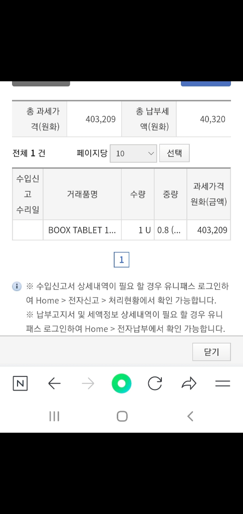 수입신고 조회해보니 과세가격은 403,209원 으로 돼있습니다
