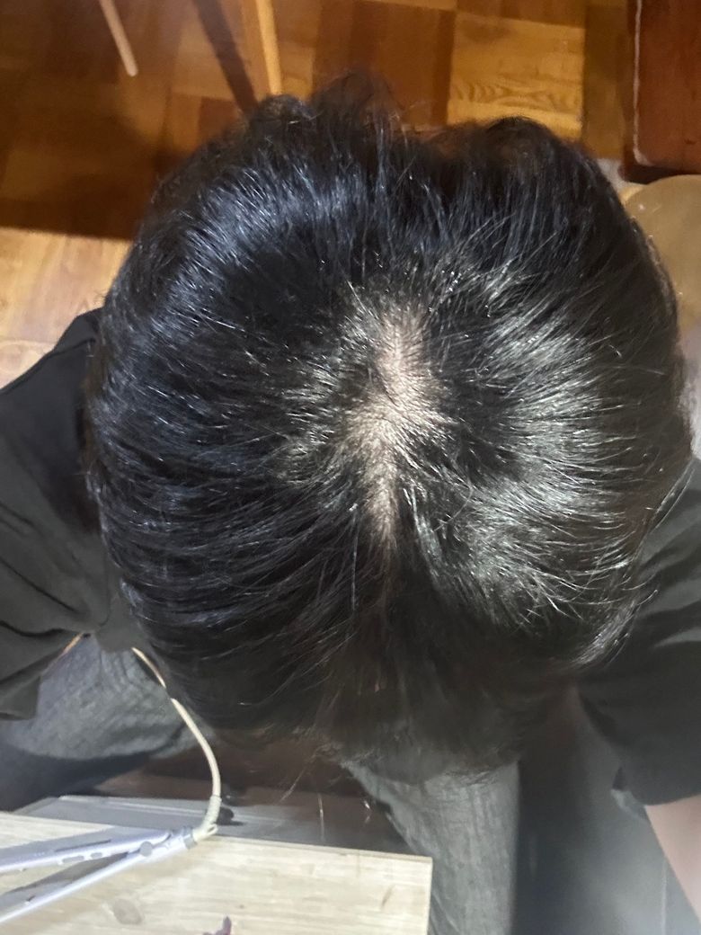 안녕하세요 최근 머리윗쪽을 확인해봤는데 정수리쪽이 너무비어 보이네요 머리를 양쪽으로 벌린 상태가 이렇게 생겼는데 정상인가요 아님 탈모인가요???