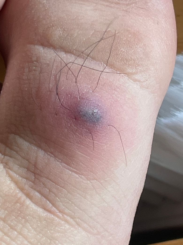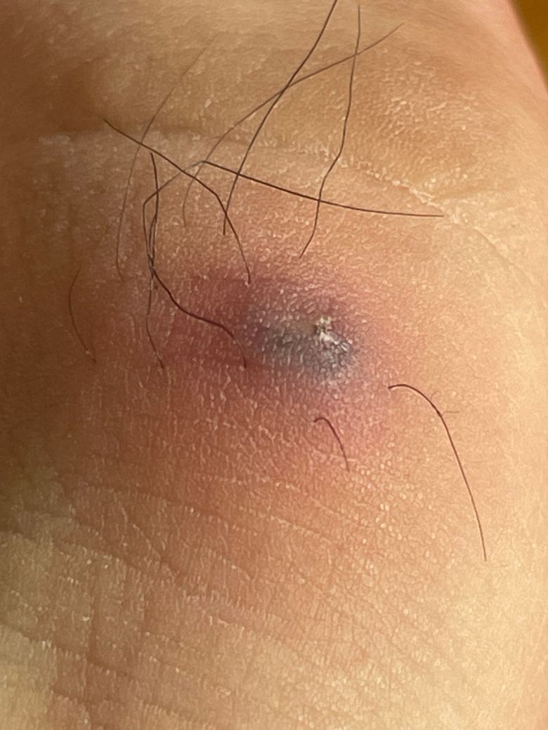 방치하면 봉와직염으로 진행할 수 있으니 피부과에 가셔서 치료를 받으시기 바랍니다.