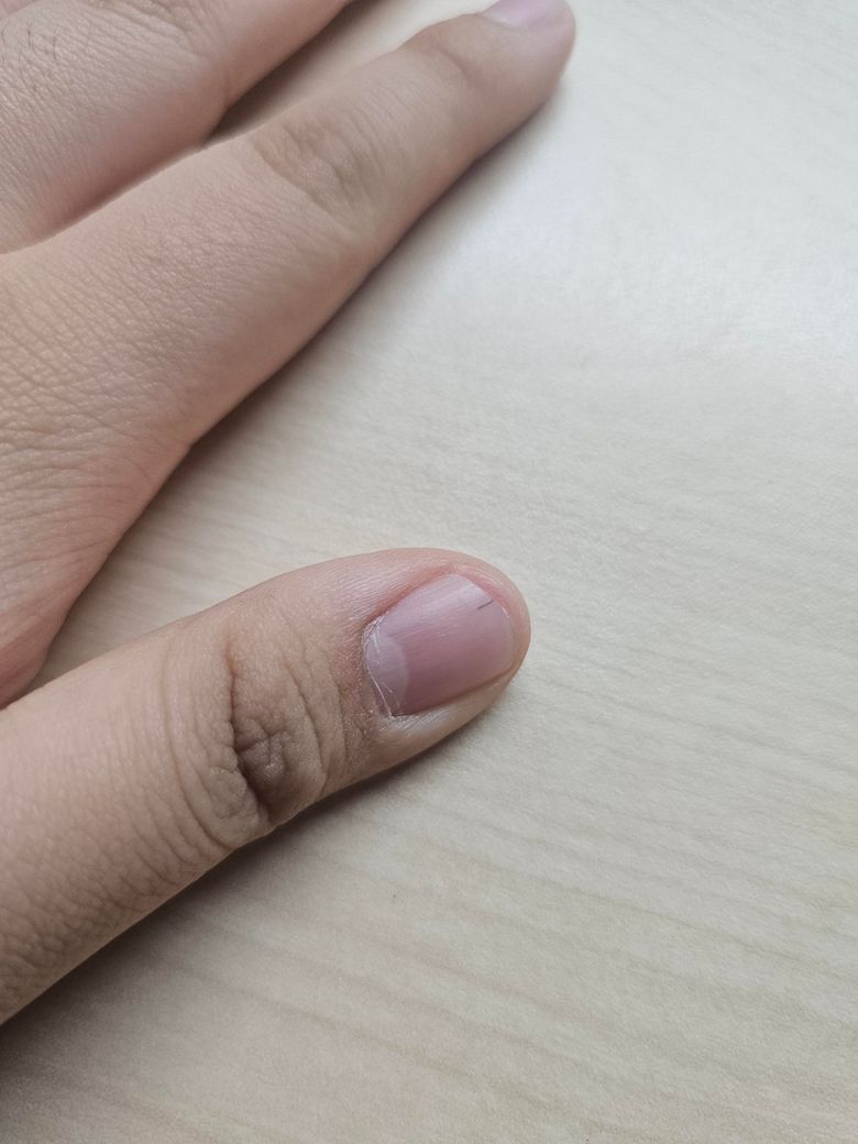오늘 보니까 언제 생겼는지는 모르겠는데 이런 검은 줄이 보이더라고요. 손톱 위에 묻은 건 아니고 안에 묻어있는데 여기까지 잉크같은게 들어간 것 같지는 않는데 괜찮은 걸까요?