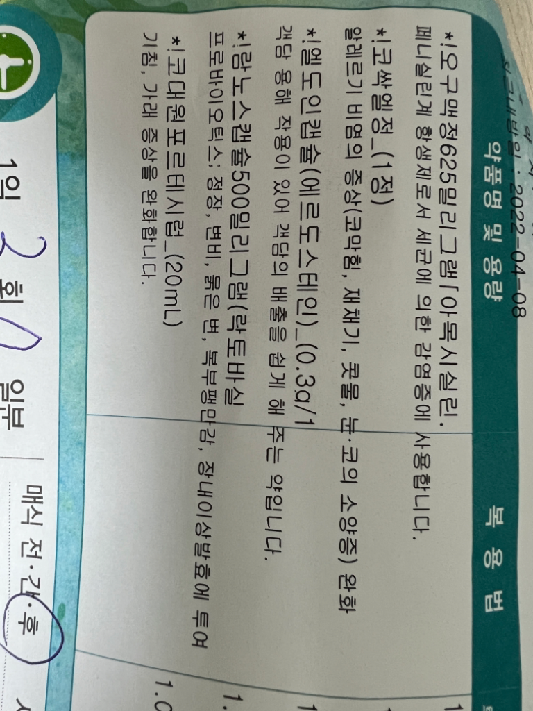 설사, 울렁거림이 너무 심하다면 중단하시고 오구맥정625mg만 빼고 나머지는 복용하시길 바랍니다.