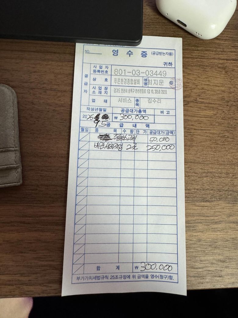 집주인분에게 수리 이유를 차분히 설명하시고 받으신 영수증을 드려보세요.