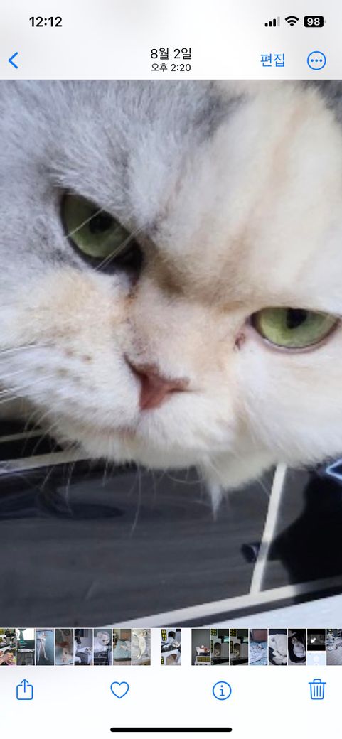 혹 건강에 문제가 있지 않을까 걱정되어 질문 드립니다. 털빠짐, 얼굴 변형 등은 없으며, 상황 지켜보고 3일 이내 동물병원에 가려고 합니다.