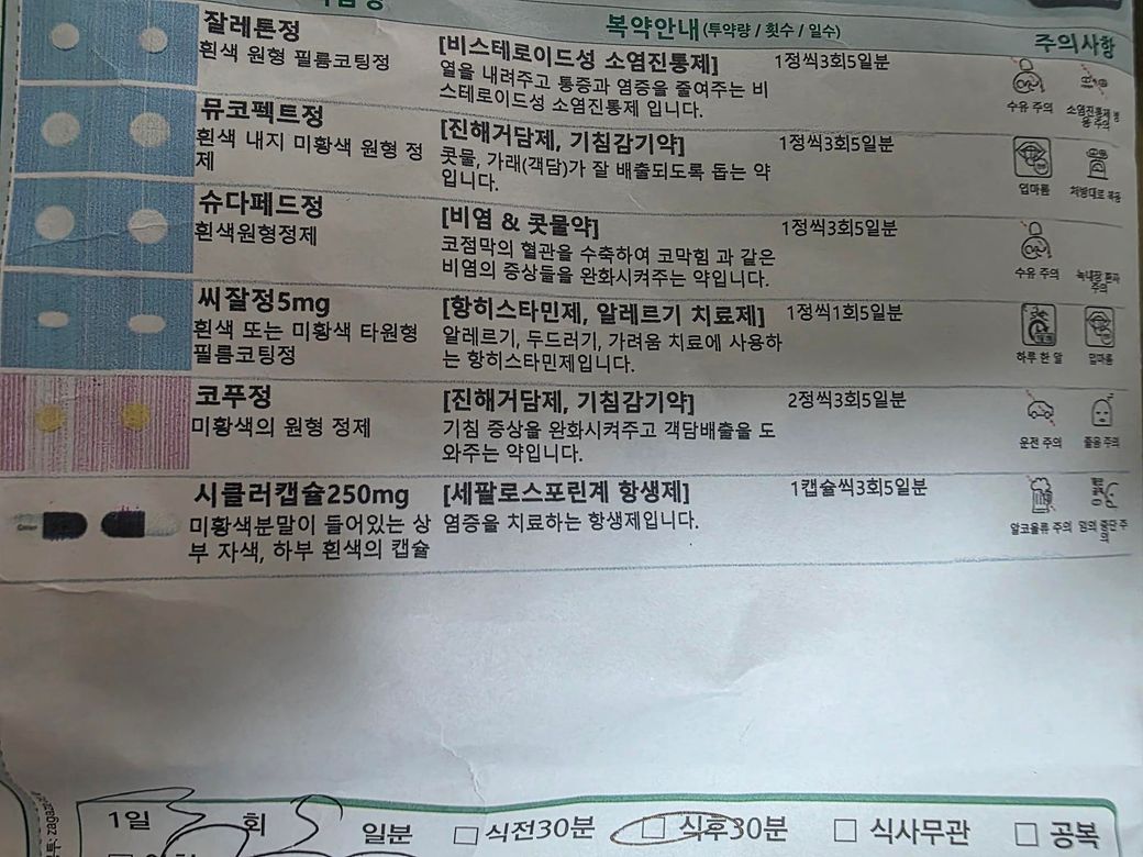 폐렴 초기라서 오늘 흉부 엑스레이 찍고 약처방 받아왔어요 질문드립니다