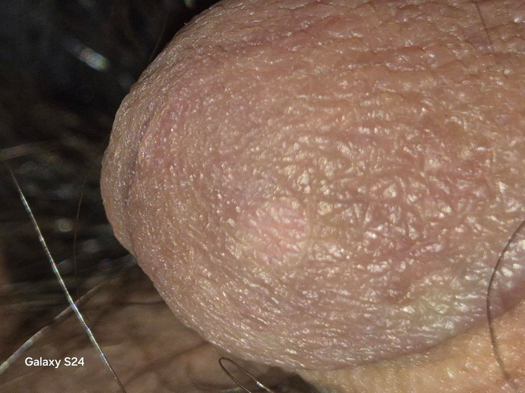 사진 기준으로 보면 귀두 표면에 뚜렷한 궤양, 물집, 진물, 딱지, 경계가 선명한 백반은 보이지 않습니다. 전체적으로 색이 옅어 보이고 미세한 주름과 건조감이 강조되어 보이는데, 이는 병변이라기보다는 샤워 후 수분·세정제 자극에 의해 각질층이 불어나면서 일시적으로 희게 보이는 상태에 가장 부합합니다.