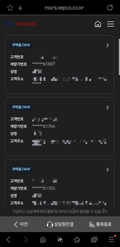2.다가구라 그런지 고객번호 조회하려니까 사진처럼 여러개 뜨는데
