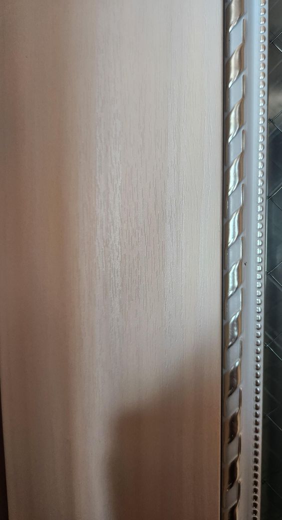 사진을 찍은 곳에서 말고 중문을 열어서 확인해보세요. 몰딩부분이 따로 설치되어있는지, 일체형인지,