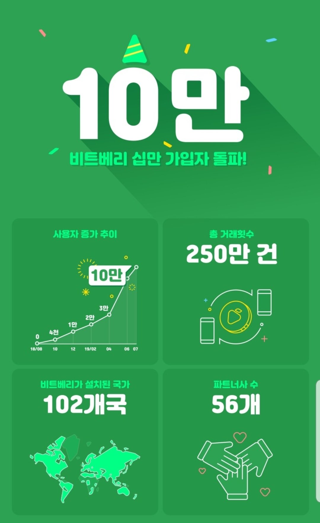 대표적인 커스터디형 지갑인 비트베리의 경우 아래 그림에서 보듯이 전세계 102개국 에서 10 만명의 가입자가 돌파했다고 루트원 홈페이지에서 공식 발표했습니다.공지사항에서도 영어와 한국어로 공지를 하고 있고 보안설정에 보면 3단계 2채널 인증시 국내 가입자의 경우 카카오페이 인증을 사용하고 외국인 가입자의 경우 sms와 구글 otp적용을 하고 있습니다.