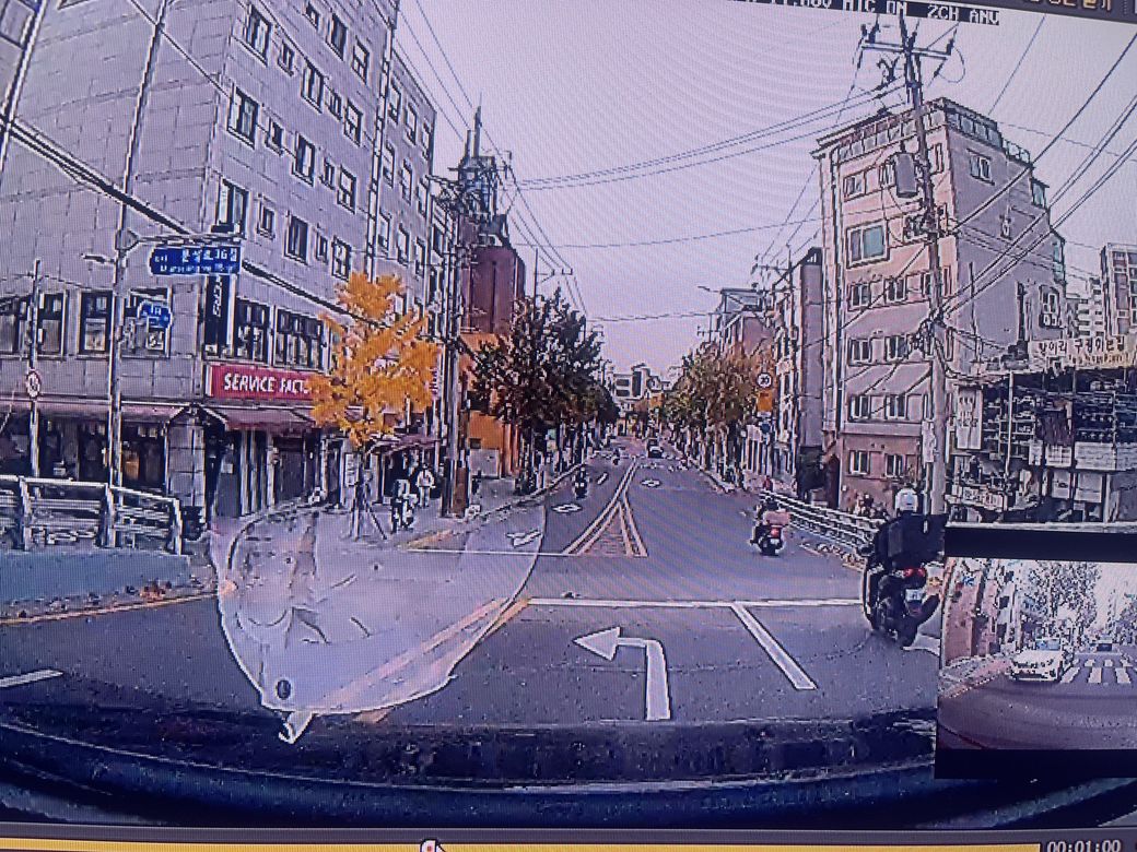 사진과 갘이 골목길에서 2차로가 1차로가 됬다가 2차로로 되는 구간에서 좌회선 차선에서 직진을 해버렸는데