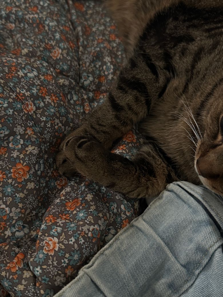 고양이가 다시 누웠고, 혹시 통증이 있나 해서 왼쪽 앞다리를 전체적으로 살짝 꾹 꾹 눌러보았는데 발을 뺀다거나 피한다거나 하진 않고, 기분이 나쁘다는 듯한 울음소리만 조금 내었습니다.