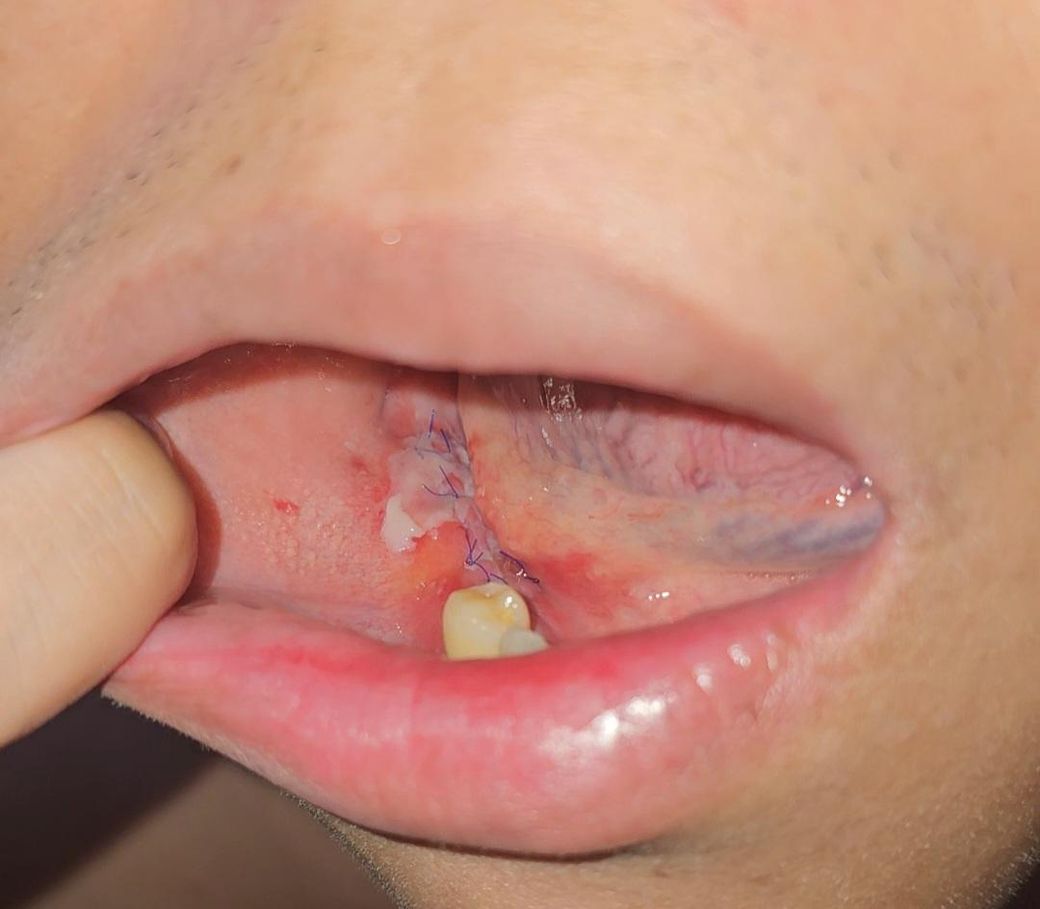 이틀전 임플란트 식립 후 꼬맨 자리입니다 양치 후에 그자리에 하얀 막?껍질?이 생겼는데 먼가요? 제거 해야하는지 그냥 둬야할지 궁금합니다