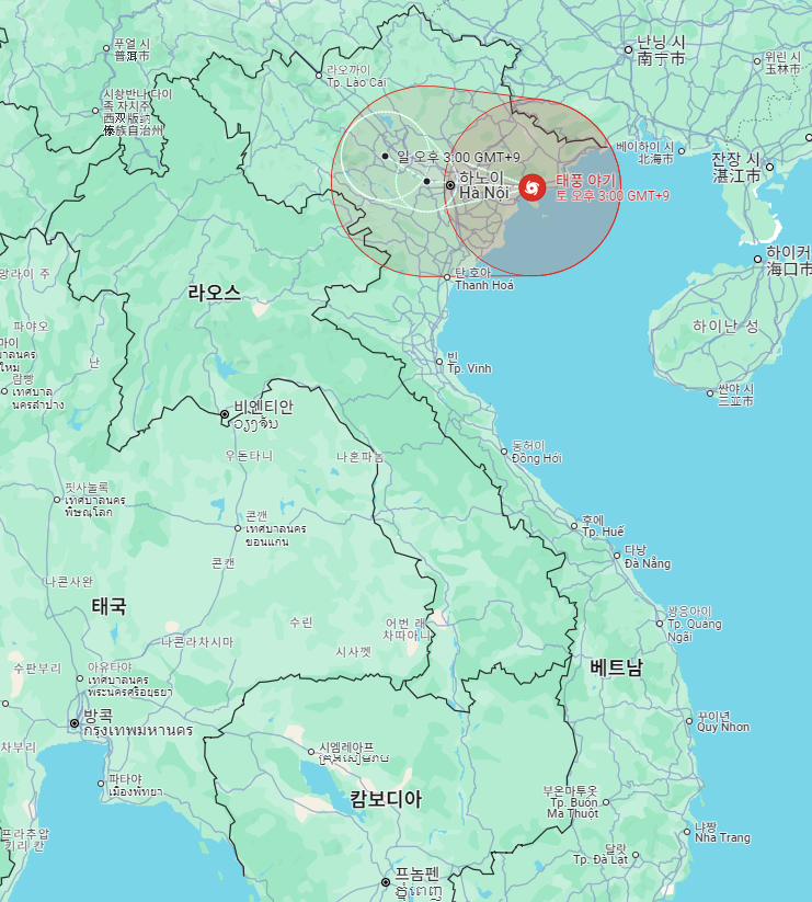 현재 태풍은 중국을 거처 베트남 지역으로 진입중에 있으며, 베트남 지역에 큰 피해가 예상된다고 합니다. 아래사진을 참고하시면 되겠습니다.