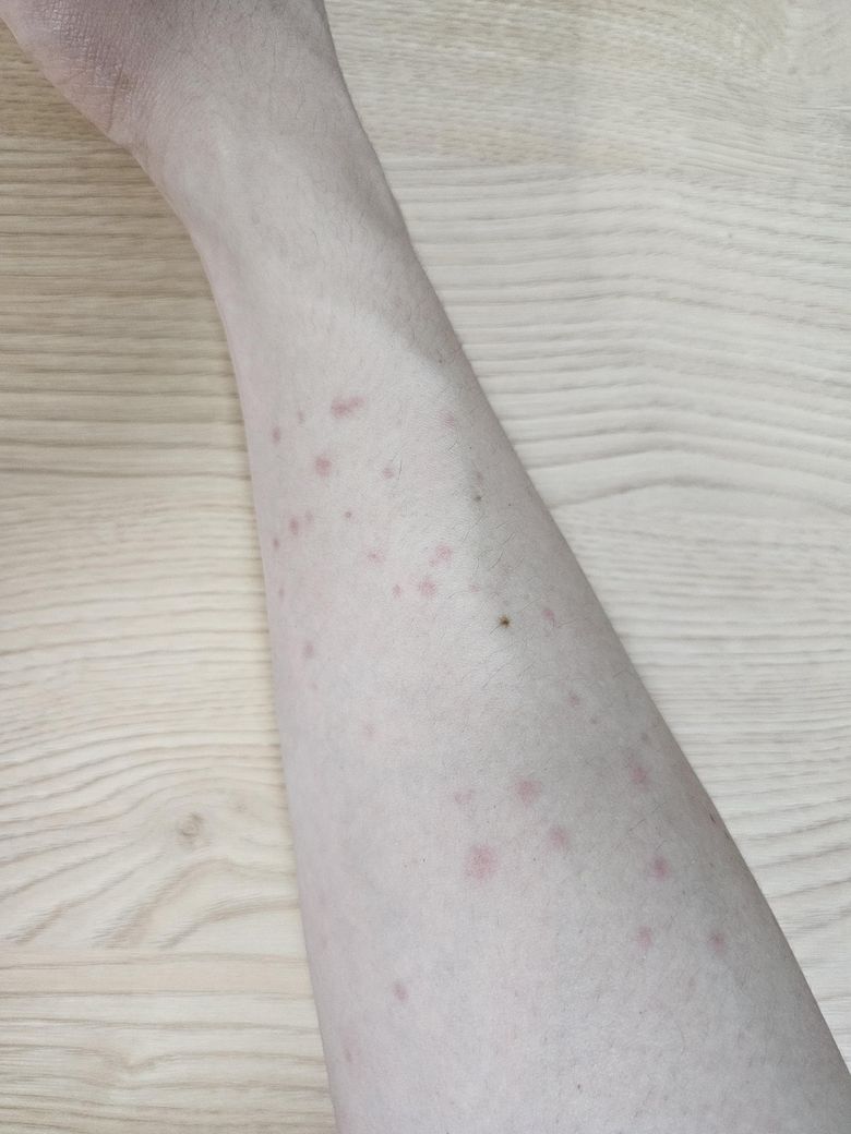 최근에 감기걸리고나서 축농증으로 아목시실린이랑 클래리스로마이신 항생제를 거의 3주 이상 복용중인데 하루 이틀 전부터 양팔 상완부분에 빨간 발진이 생겼습니다. 아프거나 가렵거나 하진 않아요.