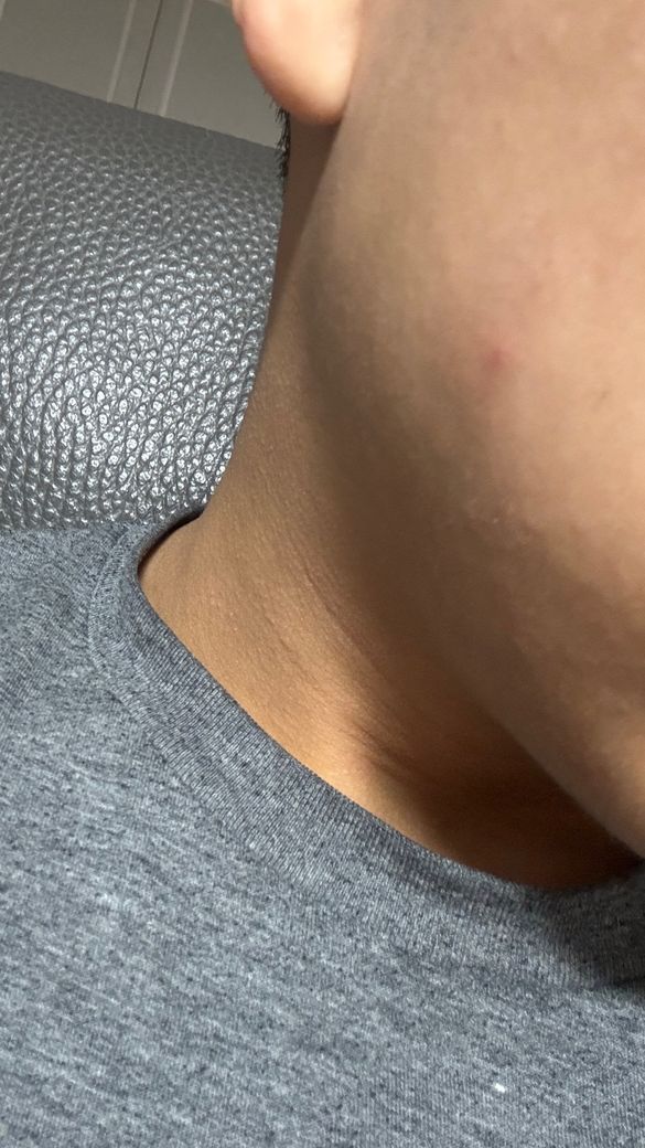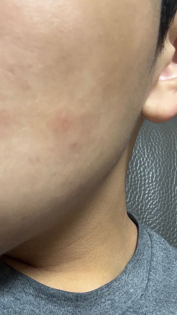 사진상 병변은 경계가 비교적 흐린 붉은 구진 형태로, 농이 찬 여드름보다는 초기 염증성 여드름 또는 자극성 피부염에 가깝게 보입니다. 감염성 농양이나 세균성 피부감염 소견은 뚜렷하지 않습니다.