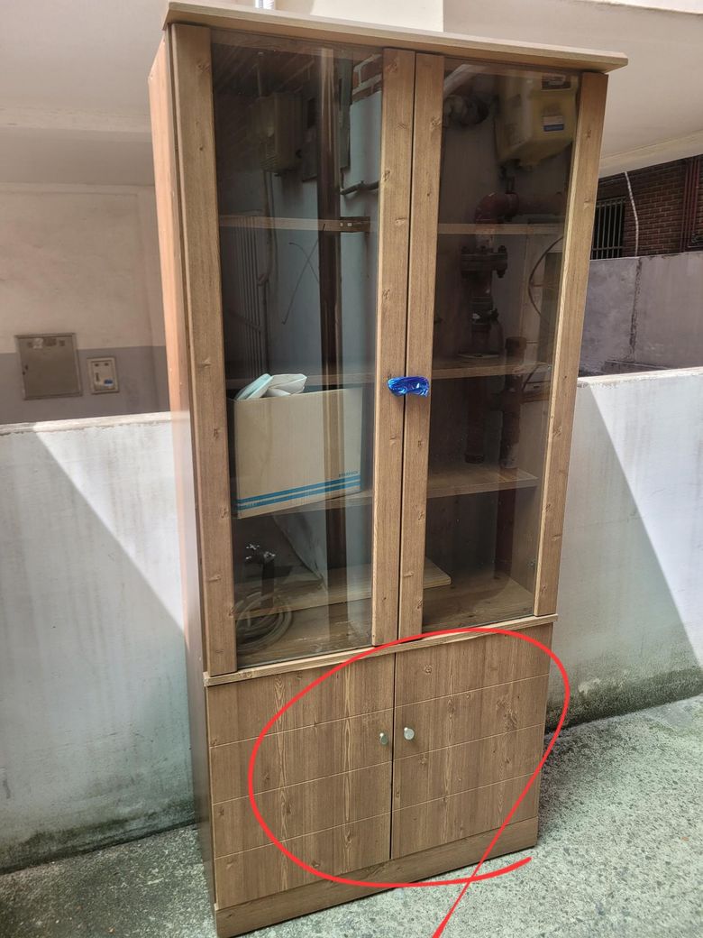 이번에 장식장을 바꾸면서 전에 사용하던 장식장을 구에서 운영하는곳 업체에 금액을 지불하고 대형폐기물로 배출 기입을 해놓은 상태이고 내일 수거할 예정인데 퇴근 후 장식장 안에 (동그라미 표시해둔) 문을열어 보니 누군지는 모르겠지만 뜬금포 망가진 의자를 넣어두었네요...이런경우에는 어떻게 대응해야 될까요...?