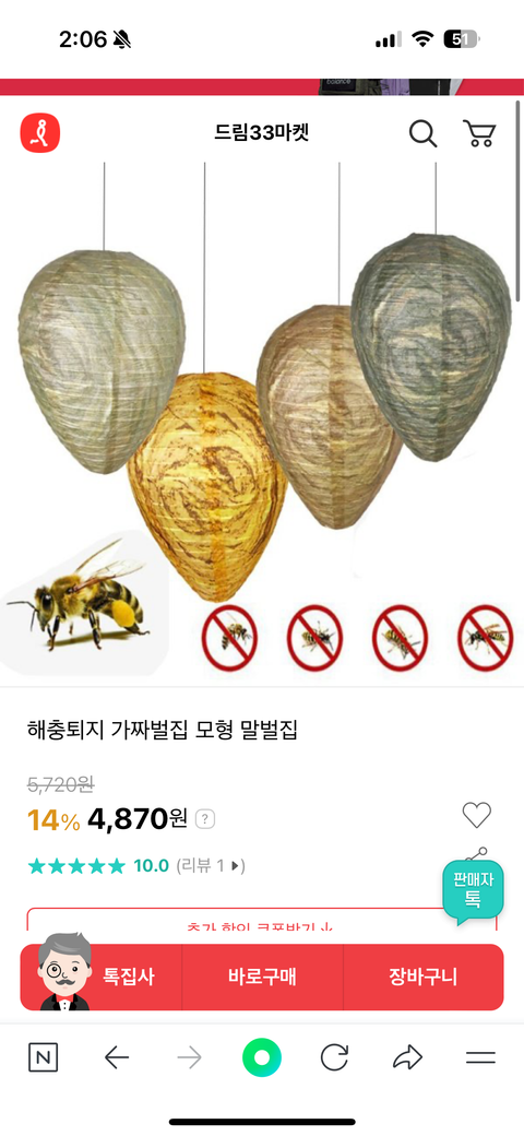 요즘 집 처마 밑이나 그런데에 말벌들이 계혹 집을 지어서 집 안만들게 할수없나 찾고있는데 사진과 같은 것들이 나오더라 구요 이거 진짜 효과있나요?