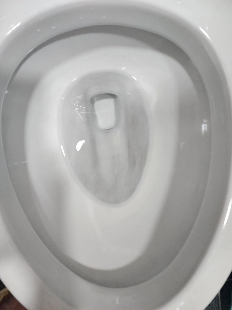 어느순간부터 변기안 물 고인곳이 검정색으로 변했는덕 락스나 세제를 써봐도 지워지지가 않아요. 사진도 청소를 한 상태입니다. 사진보다 더 진하게