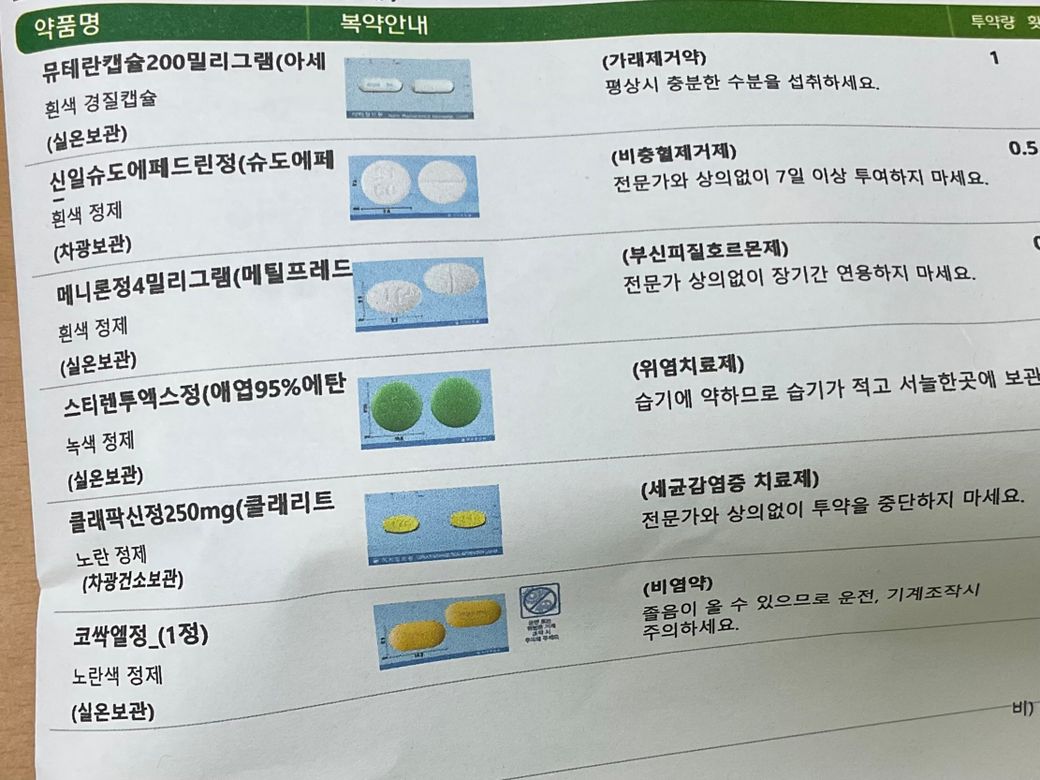 제가 생리를 미루려고 경구피임약 디어미순을 어제부터 먹고 있는데 코감기에 걸린 것 같아서 오늘 약을 받아왔거든요 근데 받고 보니까 디어미순이랑 아래 사진 약들을 같이 먹어도 되는지 걱정돼서 질문합니다 같이 먹어도 문제가 없을까요?