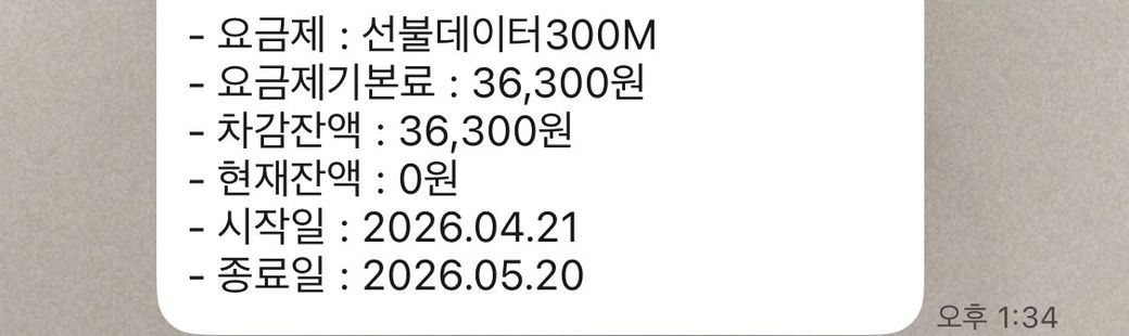 충전일이 4/20일이나 21일 둘 중 하나인 건 알고 있었지만 저런 경우에는 4/21~5/20일까지 따로 충전을 안해도 저 기간동안에는 그냥 사용할 수 있는건가요? 혹여나 오류 사항으로 중간에 끊기지는 않는 거겠죠? 현재 잔액 0은 뭘 의미하는 걸까요?