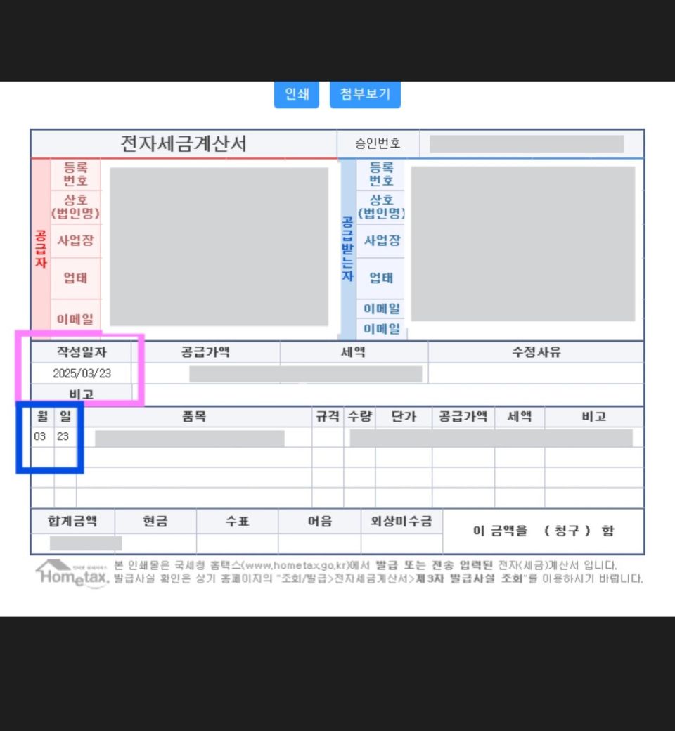 세금계산서발행시 작성일자오류인가요?