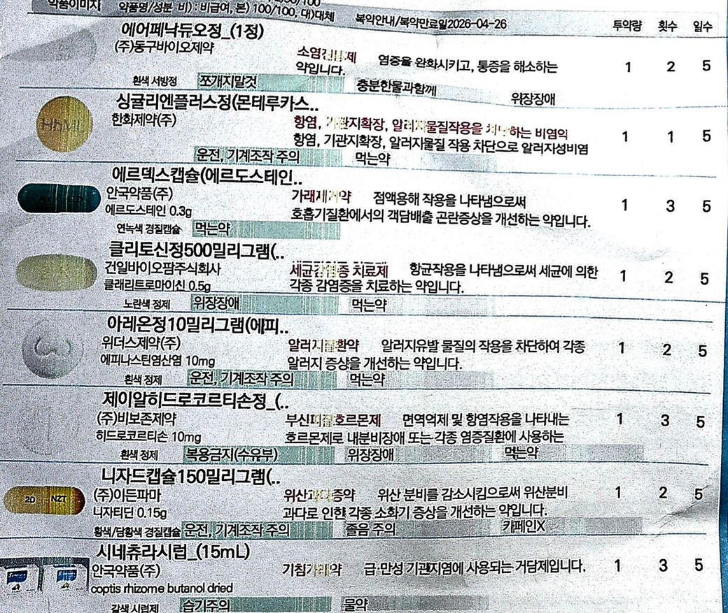 오늘 받은 처방과 이번 달 초에 받은 약 둘 다 똑같습니다..