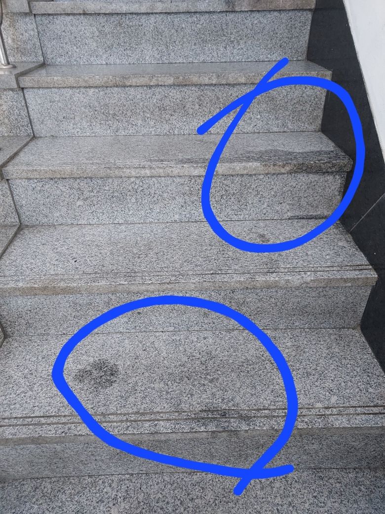 계단은 특수세정제를 이용해서 닦아야 잘 지워집니다. 깨끗이 닦은다음 마른 걸레질을 하고 물기를 없앤다음 손잡이도 닦아서 습하지 않게합니다.