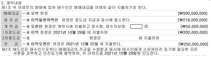 2. 중도금 지급 시 매도인은 퇴거하고, 매수인은 인테리어 공사를 시작한다.(매도인 승낙, 이때부터 매수인이 관리비 납부)