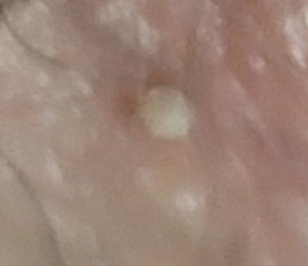 질문하신 내용에 대하여 아래와 같이 답변 드립니다.정확한 검사가 필요해보이나 곤지름이 가능성도 있습니다.