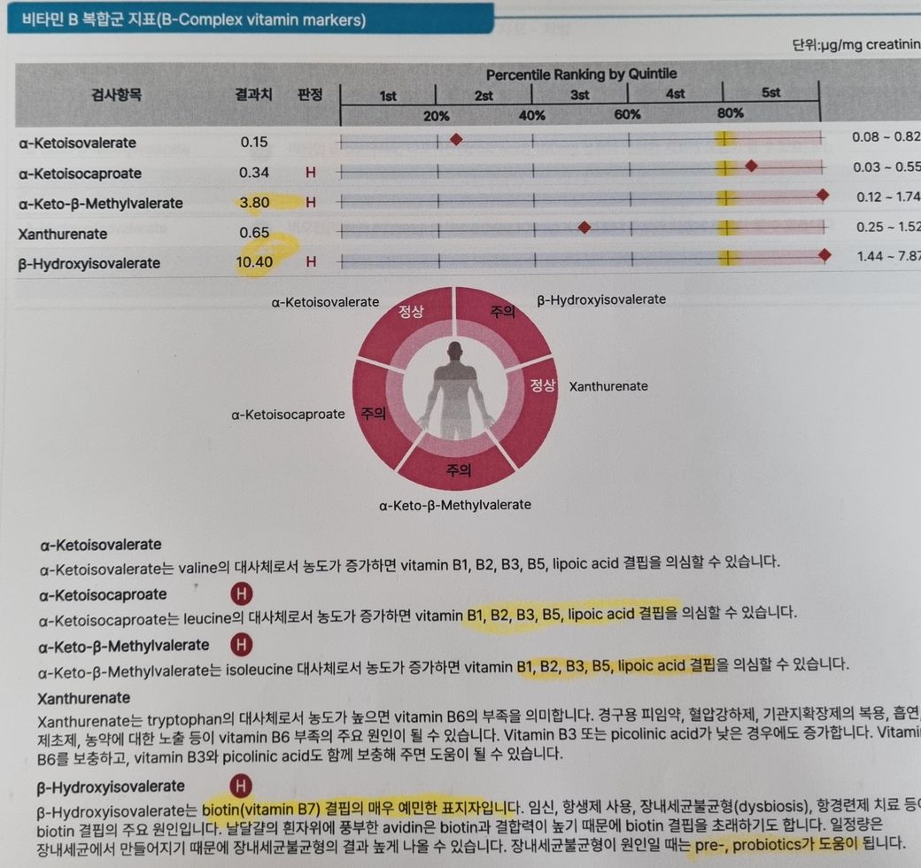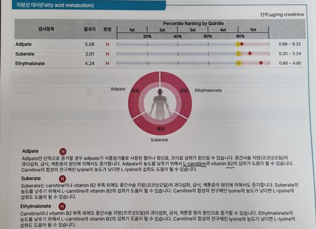 유기산검사 해당내용 간략하게나마 설명 부탁 드립니다