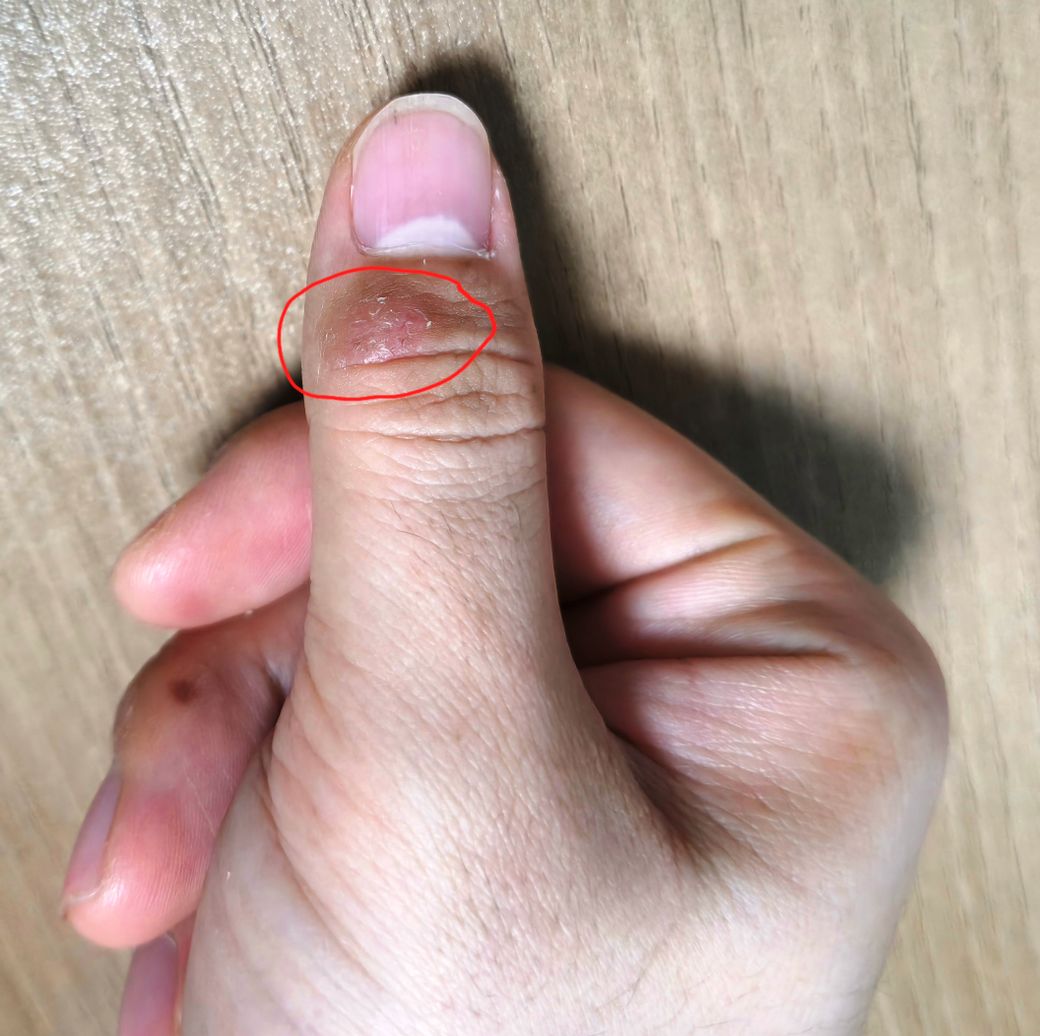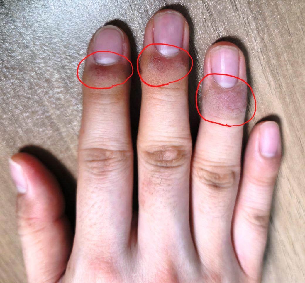 손가락 끝 부분 가려움과 갈라짐 및 따가움 증상이 있습니다.