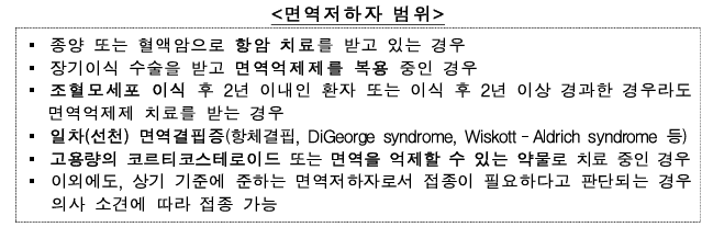 이 내용으로 보건대 환자분이 문의하신 B형간염도 면역저하자 범위에 포함되는가?