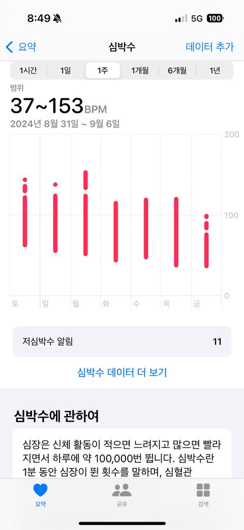 자꾸 잘때마다 심박수가 점점 낮아지고있어요