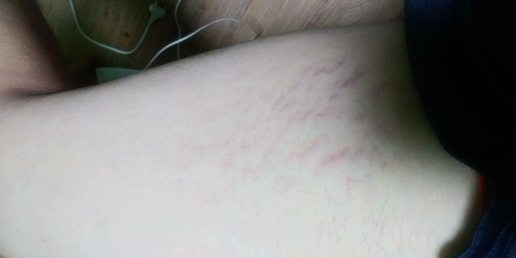 최근에 체중이 급격하게 불어난 것이 아닌가요? 튼살이 생긴 것 같습니다. 일단 체중을 줄이는 것이 필요하구요. 튼살 크림이라고 있어서 그것도 사서 발라 보시면 됩니다. 피부과 가셔서 레이져 치료 받으셔도 되구요.