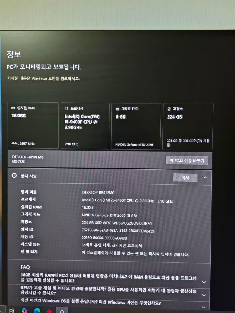 질문자님의 컴퓨터 사양은 배틀그라운드 국민옵션은 물론이고, 중상급 그래픽 옵션도 무리없이 소화할수있는 충분한 성능입니다. 특히 RTX2060 그래픽 카드와 16GB 메모리는 고사양 게임 구동에 매우 유리합니다. 저장 공간만 부족할수있으니 배그 설치 및 게임 데이터 용량 정도 확인해 적정 용량 확보 필요합니다.