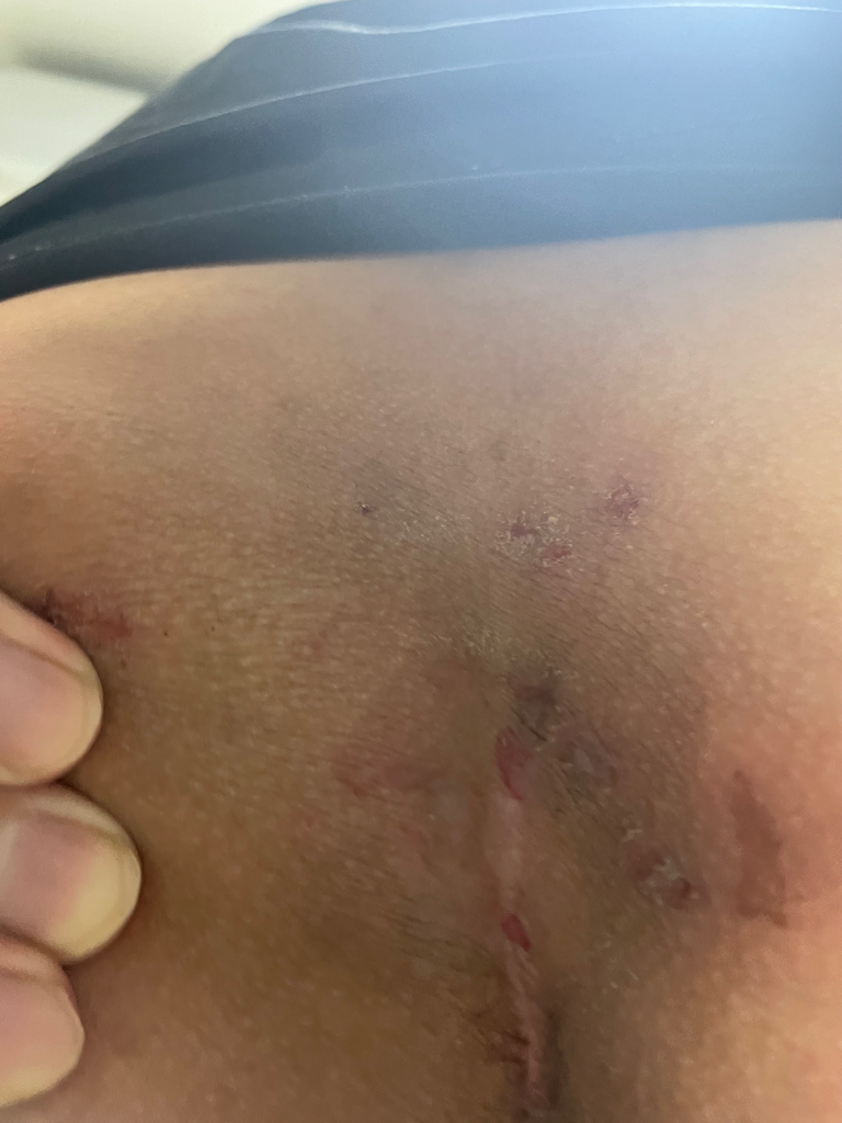 욕창은 아니구요. 피부를 너무 많이 긁으셨나봐요. 찰과상이 생기면 더 가려워요. 그리고 오랜 시간 앉아 있다면 피부가 습해지면서 가렵습니다. 피부를 건조하게 관리하면서 연고를 좀 바르시면 좋겠습니다.
