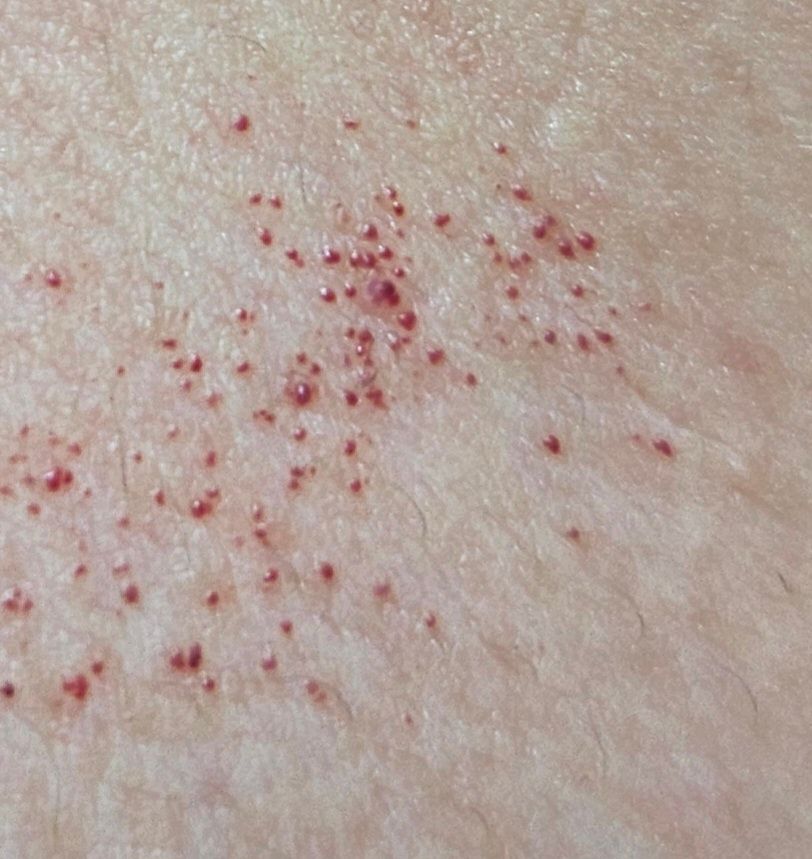 사진에 보이는 이 빨간 점들은 무엇인가요? 혹시 건강에 이상이 있어서 생긴 걸까요?
