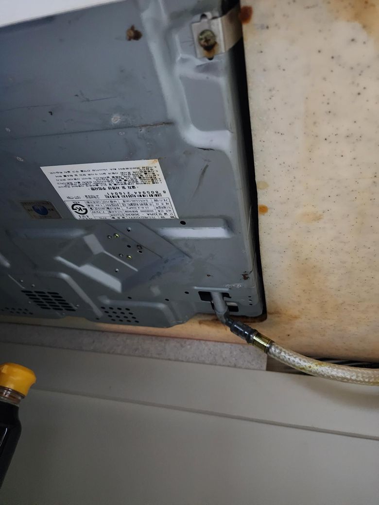가스레인지 사이로 기름 누출되어 하부장쪽으로 떨어짐